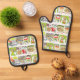 Retro Kitchen Cook Book Illustration Bright Green Ofenhandschuh & Topflappen-Set