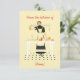 Vintage Darstellung der Frau in der Schürze, die Leckereien in ihrer altmodischen Schwarz-Weiß-Küche zubereitet. Rezept-Karte. Retro. Schwarz, weiß, creme, rot. Personalisiere.