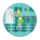 Mit diesem Retro Küchen-Schneidebrett können Sie Ihre Torte essen und sie essen, auch. Diese kitschy, unbedeutende Kunst, die Eigenschaften eine perfekte Fünfzigerjahre Hausfrau, in ihrer modernen Küche der Mitte des Jahrhunderts zeichnet. Der schöne Bäcker trägt ein flouncy, Grünkleid und eine weiße Schürze mit der roten ausführlichen Schilderung. Nicht ist ein Haar auf ihrem blonden Kopf aus Platz heraus. In einer Hand hält sie die Frucht ihrer Arbeit--ein herrliches, Gitter überstieg, Fruchttorte. Ein flüchtiger Blick und Sie wissen, dass ihre flockigen Pasteten ohne Füllung an zweiter Stelle zu keinen sind. Sie ist auf einem Aqua und aquamarinen einem Schachbrettboden stehend, denen ohne Zweifel genug sauber ist, weg zu essen von. Gegen eine Aquawand sehen wir aquamarinen Cabinetry mit Aquaordnungsarbeit, einem roten Countertop, roten Fachzügen und schwarzen Sternexplosionakzenten. Ein Rot, Sternexplosionuhr hängt an der Wand. Zur Seite gibt es einen Entwicklungs-, weißen Kühlschrank mit silbernen Griffen. Mindestens war der Kühlschrank Entwicklungsin 1950. Jetzt ist er gerade schlichtes träumerisches! Ob Sie Suzie-Hauswirtschaftsleiterin sind oder einfach eine Affinität für alle Vintagen Sachen haben, sind Sie zur Liebe diese scrumptious Scheibe von Americana sicher.