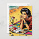 Retro Lady am Beach Daydreaming über Mode Postkarte