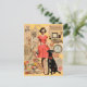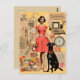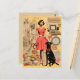 Retro Lady mit schwarzem Hund Collage Postkarte