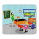 Dieses kundengerechte Retro Lehrer-Schneidebrett erhält ein A+! Diese Sechzigerjahre Art, unbedeutende Kunst, der Cartoon, der Eigenschaften ein vibrierendes, grundlegendes Klassenzimmer mit alles zeichnet, musste den Verstand der Zukunft formen. Es ist die Art des Raumes, in dem Ideen bewertet werden und Kreativität gepriesen wird. An der Front des modernen Klassenzimmers der Mitte des Jahrhunderts, sehen wir den populärsten Lehrer der Schule, der vor einer Tafel stehend ist. Lehrer trägt ein hellgrünes und gelbes Kleid, mit gelben Schuhen. Obwohl die Uhr auf der blauen Wand uns sagt, ist es fast Zeit, damit die abschließende Glocke schellt, sie schaut noch so frisch wie ein Gänseblümchen. Ihr schwarzes Haar wird an der richtigen Stelle mit einem gelben Stirnband behalten und ihr Mod, rote Gläser helfen ihr zu sehen, um jeden möglichen Unfug auf der hinteren Reihe zu beschränken. Sie steht eine Hand auf ihrem orange und schwarzen Schreibtisch still. Der saubere Schreibtisch ist ein Tribut zu ihren feinen organisatorischen Fähigkeiten. Die einzige Sache auf dem Desktop ist ein glänzender, roter Apfel, der ohne Zweifel ihr von einem verehren Studenten gegeben wurde. Sprechen der Studenten… Wir können ein paar die sehen, auch. Von unserem Standpunkt können wir zwei eifrige Studenten sehen, hinter ihrem Rot, Schulschreibtische zu sitzen. Es gibt ein blondes Mädchen mit einem federnd Pferdeschwanz, der ein helles rosa Kleid trägt. Nahe bei ihr gibt es einen dunklen behaarten jungen Mann, der ein grünes Shirt und blauen Jeans trägt. Jedes Kind hält ein helles blaues Schulbuch. Sie sind so eifrig, zu erfahren, dass sie nicht einmal bemerkt haben, dass es fast Zeit ist, damit sie den gelben Schulbus verschalen, den wir warteten sie durch die offenen Vorhänge auf dem Klassenzimmerfenster sehen. Unter dem Fenster gibt es ein orange Bücherregal, das bunte Bücher und eine Kugel der Welt hält. Sorgen Sie sich nicht, Kinder. Morgen sind Sie zurück in Ihren Plätzen mit den hellen, glänzenden Gesichtern. Der Name auf der Tafel ist kundengerecht.