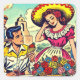 Retro Liebe Couple Comic Quadratischer Aufkleber