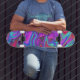 Retro Lila, blau und orange Abstrakte flüssige Kun Skateboard
