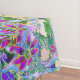Retro-Lila, grüne und blaue Wildblumen auf Rosa Tischdecke