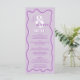 Ein cooles Hochzeitsmenü mit individuellen Namen mit handgeschriebenem Kalligraphie- und Serif-Schriftart, 2 Namen , zwei Stile mit Retro boho lila Lavendel-Kurve quiggle wavy Hochzeit. Alle Texte, Namen und Hintergrundfarben sind für Sie individuell einstellbar, um Ihre Hochzeitssuite zu mischen und anzupassen.