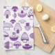 Dieses Design wurde von einer Schüssel beeinflusst, die ich aufgewachsen war. Das Handtuch ist in lila Farbtönen mit verschiedenen Stilpilzen gestaltet.