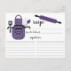 Fun Retro Brautparty Kochrezepte mit einer lila Polka Dot Schürze mit Küchenwerkzeugen und rollendem Button. Die Vorderseite unserer Rezeptkarte bietet Platz für einen Rezeptitel, von der Küche der Zutaten Platz. Dreh dir unsere Rezeptkarte, um die Rezepte zu sehen. Besuchen Sie unseren Shop für passende Brautduscheinladungen. In unserem Shop finden Sie eine große Auswahl an beliebten Polterabend-Farben. Perfekte Brautduscheinlage für einen Stock im Brautparty.