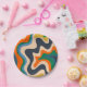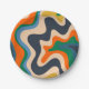 Retro Liquid Swirl Abstraktes Muster Blau Orange Pappteller