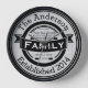Retro Logo Style Pattern Clock Personalisierter Familienname und etabliertes Datum - Loyal, Stand Together, Family First, Liebe oder Customize, um Ihre persönlichen Familieneigenschaften einzubeziehen - oder erzählen Sie die Wahrheit, arbeiten Sie hart, Behalt Ihre Versprechen, kein Gefallen, Sei freundlich, Sei nett, sag bitte und danke. Neuvermählte, 1. Weihnachten, erste Weihnachten, Hochzeitstipendien, Hochzeitgeschengeschenjubild, Familienjubild,