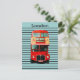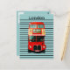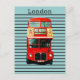 Cutout Foto des hellroten Londoner Busses des Routemaster-Typs auf dem Hintergrund von schwarzen Linien und Pfefferminzgrün mit Titel 'London'.