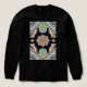 Vibrant retro-inspired symmetrical mandala with a bold black background framing soft pastel lotus flowers and geometric arches in mint green, lavender purple, warm peach, and golden yellow. Intricate linework and layered floral motifs blend 70s boho vibes with modern serenity—perfect for oversized tees, hoodies, tote bags, yoga apparel, and wall art. Ideal for wellness lovers, retro aesthetic fans, and anyone craving calming yet eye-catching spiritual designs.