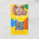 Machen Sie sich bereit, eine Erklärung mit unserer Retro-inspirierten Visitenkartenvorlage für Makeup-Künstler abzugeben. Dieses lebendige Design vereint das Wesen einer spielerischen, bunten Ästhetik, die perfekt für moderne Makeup-Profis geeignet ist. Die abstrakte Terracotta-Gelbe, die grün und blau mit fetten, herzförmigen Formen und einem lebhaften goldgelben Hintergrund prägen, wird die Karte sicher begeistern. Die Vorderseite hebt Ihr Profilbild, Ihre Social Media und Details mit stilvollen Wirbel hervor, während die Rückseite einen zweiten Foto-Raum und einen QR-Code für den sofortigen Zugriff auf Ihre Dienstleistungen bietet. Ob für Brautpartys, mobile Services oder Alltagsgläser - diese Visitenkarte garantiert Ihnen einen guten Eindruck in der Beauty-Branche. Ideal für Make-up Künstler, die eine Mischung aus modernen und Retro-Stilen Liebe.