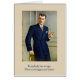 Ein Vintages Beispiel für einen gut gekleideten, hübschen Retro-Mann, der eine Pfeife raucht und sich so gestellt hat, dass jeder um ihn herum seine Pracht voll und ganz schätzen kann. Er sagt: "Jeder hat ein Ego. Meiner ist einfach größer und besser." Die Innenseite der Karte ist leer für Ihre eigene Nachricht.