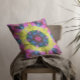 Retro Mandala Blume Blau Gelb und Rosa Kissen