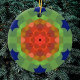 Dieses Retro-Mandala-Design zeichnet sich durch orange, grün und blau in einer Blume aus. Funky und lebendige Bilder für jeden, der helle Farben mag!