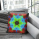 Retro Mandala Blume Rot Blau und Grün Kissen