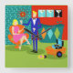Diese Retro Martini Couple Acrylic Wall Clock sieht aus wie eine Szene aus einer romantischen Komödie. Das minimalistische Design dieses modernen Hauses oder Apartments im Stil der 60er Jahre ist elegant dekoriert und bietet eine moderne Unterkunft im Zentrum des Jahrhunderts. Die Besetzung ist ein attraktives Paar, das einen Abend mit glitzerndem Gespräch, guter Musik und bodenlosen Getränken genießt. Der Raum ist mit einem grünen Boden, einem Aqua- und aquamarinen Ziegelmauer ausgestattet. Eine schöne Frau, die sich bequem in einem Mod, Orangen-Ei-Stuhl ausruhen kann. Ihr knallrosa Kleid ist gerade kurz genug, um ihre formschönen Schinken zu zeigen. Mit der Handwelle hat diese blonde Schönheit die unmittelbare Aufmerksamkeit ihres männlichen Bewunderers. Ihre messe-haarige Begleiterin trägt einen blauen Anzug, weißes Shirt und schwarze Bogen Krawatte. In seinen Händen hält er zwei Kristallbrillen mit schwimmenden Oliven. Mach dir keine Sorgen. Er bietet seiner Freundin eine an. Das Paar hat so eine wunderbare Zeit, dass keines der beiden die Stunde beachtet, die auf der Kätzchen-, Rot-, Sternexplosion-Uhr auf der Ziegelwand hinter ihnen zu sehen ist. An einer vergoldeten, feuerroten Wand befinden sich drei klassische Leinwand-Stretchdrucke von Classic Movie Martini, die auch im StrangeLittleOnion's Zazzle Store erhältlich sind (Tipp, Tipp!) Zwei der Drucke sind mit türkisfarbenem Hintergrund und einer mit einem dramatischen schwarzen Hintergrund versehen. Unter den Drucken zentriert ist ein elegantes nasses Bar. Die Vorderseite des aquamarinen Bar besteht aus drei harlequin-Diamanten in Orangetönen, Türkis und Grün. Wir können die Silhouetten der Martini-Brille sehen, die auf der Theke oben ruhen. Ein orangefarbener Ottoman hält im ganzen Raum einen blauen und schwarzen, tragbaren Plattenspieler. Auf dem Boden sehen wir die Vinyl-Platten und ein hellgelbes Albumcover. Dieses ansprechende Duo hat so eine wunderbare Zeit, dass keiner von beiden auf die Stunde, die auf der kitschigen, roten, Sternexplosion-Uhr auf der Backsteinwand hinter ihnen zeigt, aufmerksam macht.
