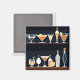 Dieser Retro-inspirierte Magnet wird auf Ihrem Kühlschrank gut aussehen! Es bringt diese stilvolle Touch der 60er Jahre Illustration in Ihre Küche. Würde ein einzigartiges, ein freundliches Haus Erwärmung Geschenk für diejenigen, die Liebe, etwas ein wenig anders und Auge zu fangen in ihrer Welt! Das Design umfasst verschiedene Flaschen, Martinis und andere Cocktailformen und -größen. Elegant, unterhaltsam und unterhaltsam!