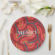 This retro, maximalist, kitsch, and modern "Merry Christmas" holiday paper plate features a red background with geometric patterns. Personalize it for your needs. You can find matching products at my store.