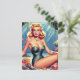 Retro Mermaid Button Up Postkarte
