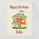 Retro Merry-Go-Round Child Name Happy Birthday Postkarte
