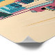 Mit diesem atemberaubenden Vintagen Reiseplakat können Sie die lebendige Miami Beach-Energie in Ihren Alltag eintauchen. Dieses Kunstwerk besticht durch farbenfrohe Art-Déco-Gebäude, Palmen und ein klassisches Rosa-Cabrio. Es besticht durch den nostalgischen Charme der berühmtesten Stadt Südfloridas. Die fette Typografie und die hellen Pastellfarben machen das zu einem Aushängeschild für jeden Raum. Dieses Plakat eignet sich ideal für Reisende, Strandfans und diejenigen, die die Retro-Ästhetik lieben. Es eignet sich ideal für Wohngestaltungen, Büroflächen oder Ferienvermietungen. Fügen Sie Ihren Mauern eine Touch tropisches Paradies hinzu!
