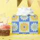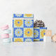 Retro Mid Century Mod Blume in Blau und Gelb Geschenkpapier