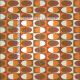 Dieses atomisch inspirierte abstrakte Kunstmuster hat Ovale innerhalb von Rechtecken in verschiedenen Orange- und Brauntönen.