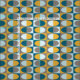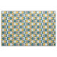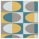 Dieses atomisch inspirierte abstrakte Kunstmuster hat Ovale innerhalb von Rechtecken in verschiedenen Blau- und Gelborangefarben.