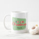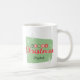 Diese Tasse zeigt eine zeitgenössische Typografie aus der Mitte der 50er Jahre und ist mit bezaubernden Sternexplosionen und Schneeflocken in hellgrünen und roten Farbtönen versehen. Personalisieren Sie diese nostalgische Tasse mit Ihrem Namen.