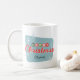 Diese Kaffeemaschine präsentiert die moderne Typografie der 50er Jahre. Sie ist mit bezaubernden Sternexplosionen und Schneeflocken in aquamarinen und roten Farbtönen präsentiert. Personalisieren Sie diese nostalgische Tasse mit Ihrem Namen.