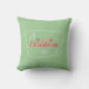Fügen Sie Ihrer Zuhause eine Touch Retro-Charme mit diesem festlichen Weihnachtskissen hinzu! Dieses moderne Design zeigt den Text "Frohe Weihnachten" in Vintag inspiriert Typografie. Der Hintergrund ist hellgrün und wird von Sternexplosionen im Stil der 50er Jahre, Schneeflocken, hervorgehoben.