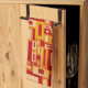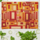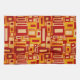 Retro Mitte des Jahrhunderts kennzeichnet modernes Geometrics Geschirrtuch ein geometrisches Muster von Rechtecken und von Quadraten mit einer Knisternbeschaffenheit. Die Farben sind Rot, goldenes Gelb, Ocker und Elfenbein.