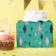 Wickeln Sie Ihre Geschenke in der modernen Art der Retro Mitte des Jahrhunderts ein. Dieses Verpackungspapier kennzeichnet die rosa und schwarzen Diamanten und die Sternexplosionen auf dunklem aquamarinem Hintergrund. Hintergrundfarbe kann geändert werden - gerade "fertigen Sie sie!" besonders an