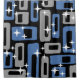 Farbenfrohe Retro Mitte Jahrhundert Modernes Abstraktes Muster in Schwarz Grau & Blau. Moderne (MCM) Mitte des Jahrhunderts ist eine Bewegung in Innenarchitektur, Produktdesign, Grafik, Architektur und Stadtentwicklung, die in der ganzen Welt präsent war, aber während der Zeit nach dem Zweiten Weltkrieg in den Vereinigten Staaten, Brasilien und Europa von etwa 1945 bis 1970 beliebter war. Dekoration und Architektur im MCM-Stil haben einen großen Aufschwung erlebt, der Ende der 1990er Jahre begann und heute weitergeht.