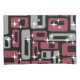 Farbenfrohe Retro Mitte Jahrhundert Modernes Abstraktes Muster in Schwarz Grau & Rot. Moderne (MCM) Mitte des Jahrhunderts ist eine Bewegung in Innenarchitektur, Produktdesign, Grafik, Architektur und Stadtentwicklung, die in der ganzen Welt präsent war, aber während der Zeit nach dem Zweiten Weltkrieg in den Vereinigten Staaten, Brasilien und Europa von etwa 1945 bis 1970 beliebter war. Dekoration und Architektur im MCM-Stil haben einen großen Aufschwung erlebt, der Ende der 1990er Jahre begann und heute weitergeht.