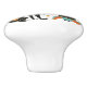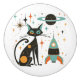 Fun Keramik Knopf mit einem Retro-MCM Design mit einer schwarzen Katze, türkisfarben Augen, Sternen, Raumschiff und Planet Saturn.