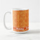 Diese personalisierte Kaffee-Tasse ist das ideale Geschenk für jemanden, der Retro-Design mag! Es ist mit einem Retro Mitte des Jahrhunderts modernen Muster quadratische Wirbel in orange. Der bearbeitbare Text erlaubt es Ihnen, ihn mit Namen oder Nachrichten, die Sie wünschen, anzupassen.