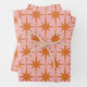 Retro Mitteljahrhundert Sternexplosionen Muster Pink & Orange. Vintage moderne Ästhetik Mitte des Jahrhunderts. Niedliches Sternendesign aus der Atomzeit. Von Kierkegaard Design Studio.