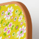 Hübsches Pickleball-Paddel mit weißen Blume mit rosa und grünen Mittelpunkten auf gelbem Hintergrund. Personalisieren mit Monogramm oder Name in weiß und grün oval