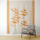 Mod Braut im Hintergrund, mit einer grobkörnigen Retro-Orange und Creme-Schachbrettmuster Rand. Personalisieren Sie Ihre individuelle Brautparty-Kulisse mit dem Namen der Braut: Zukunftsfrau x. personalisierte Brautparty Foto-Requisite, Brautparty Foto-Kulisse, boho Junggeselinnen-Abschied-Schild Dekor, wenn Wochenendausflug Dekoration Tapestry, moderne Fotokabine für ihre Braut, Brautparty zukünftigen Mrs-Zeichen, Zukunft mrs Hintergrund Trauung, einfach zu mrs Banner verpassen, maßgeschneiderte Brautparty Hintergrund Weiß