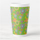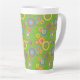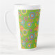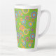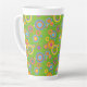 Helle und farbenfrohe Kehle-Muster mit mehreren ringförmigen Kreisen verschiedener Größen und Farben auf grasgrünem Hintergrund.