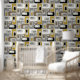 Bring a touch of retro flair to your interiors with this joyful wallpaper featuring a unique geometric design. The retro mood pattern combines calm and vivid colors that can transform any room into a stylish haven. Perfect for those looking to make a bold statement, this wallpaper is sure to impress your guests and enhance your decor. Explore the endless possibilities of revitalizing your environment and express your personality with this eye-catching design.
