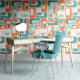 Retro Mod Ovals Orange Mint Teal Aqua Blue Tapete