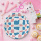 Retro Mod Pink Blue Checkerboard Abstrakt Pappteller