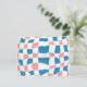 Retro Mod Pink Blue Checkerboard Abstrakt Postkarte