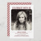 Als moderne Alternative - kühn und grafisch - zeichnet sich dieses Design durch das Foto Ihres Absolventen in einem abgerundeten quadratischen Rahmen und alle Party- oder Ankündigungsdetails auf der Vorderseite aus. Auf der Rückseite vervollständigt ein trendiges Zickzack Muster den modernen Stil. Erhältlich in verschiedenen Farben.