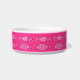 Moderne, skurrile, retro-fische Haustierschüssel in Pastelltönen, mittel-rosa und fuchsienfarbenen Tönen auf einem mittelfuchsienrosa Hintergrund