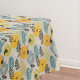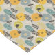 Blumenmuster wie in den 50er Jahren und im 60er, blau-grau und orange-gelb, mit grauen Blätter in Grün und Schwarz auf grauem Hintergrund.
